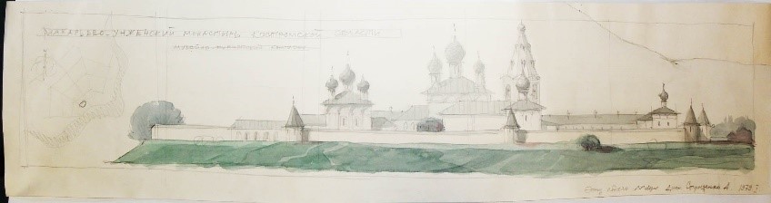 Эскиз подачи к диплому МАРХИ «Макарьево-Унженский монастырь Костромской области. Музейно-туристский комплекс», Старостенко А., руководитель Л.В. Андреев.