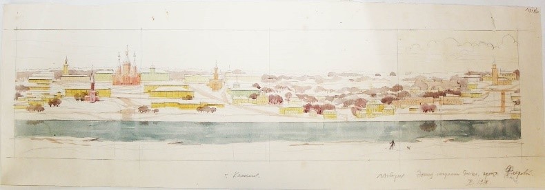 Эскиз покраски дипломного проекта студентки МАРХИ Н. Разиной, руководитель Л.В. Андреев. «Реконструкция исторического центра г. Галича»