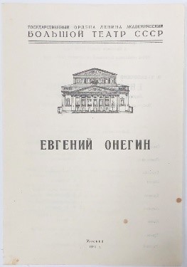 Программа спектакля Большого театра СССР «Евгений Онегин» 23 марта 1974 г. С участием нар. арт. РСФСР Т.Ф. Тугариновой