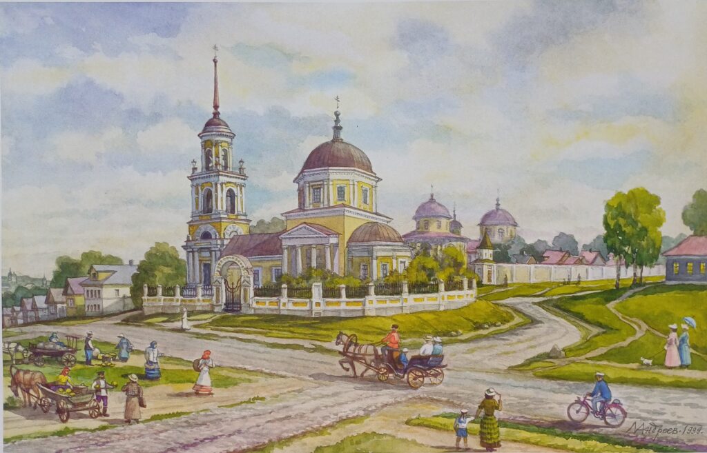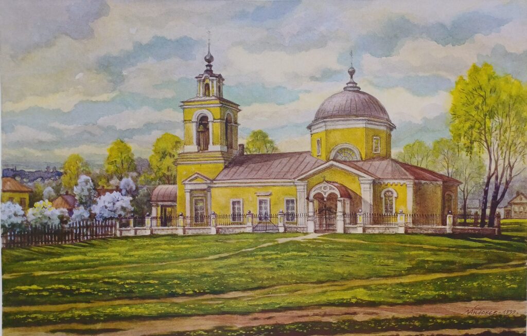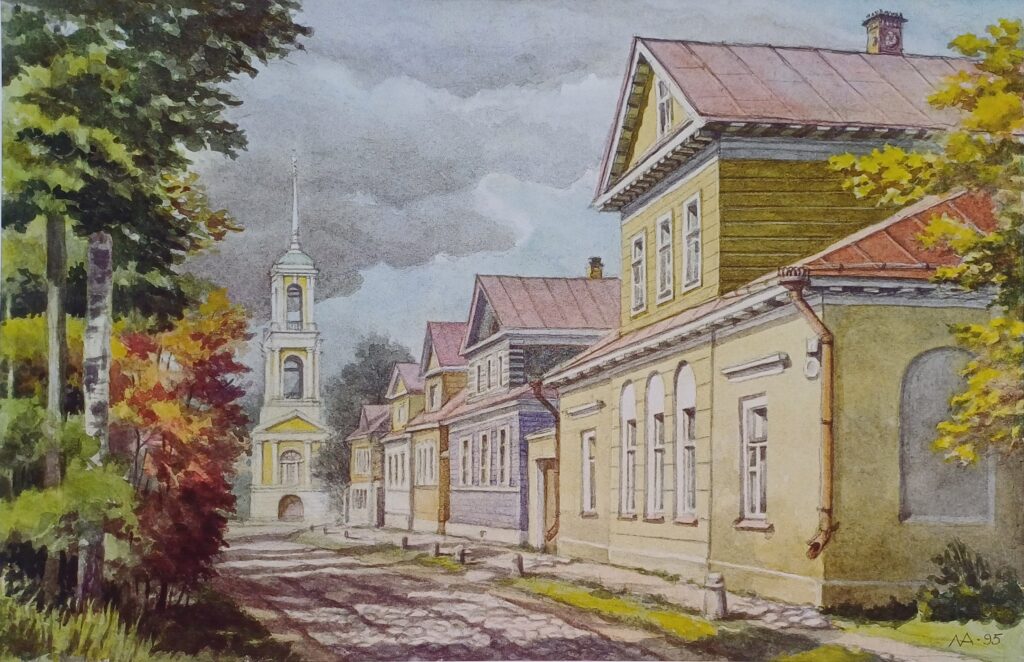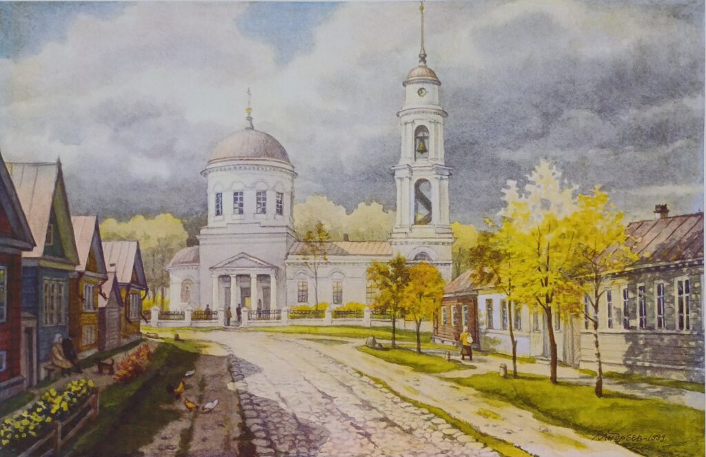 Л. В. Андреев. Акварель «Церковь Дмитрия Солунского в Торжке». Октябрь