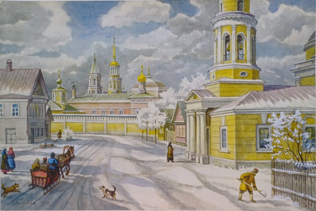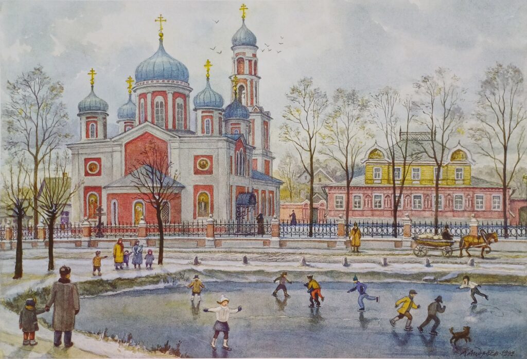 Л. В. Андреев. Акварель «Под горой Успенской церкви». Декабрь