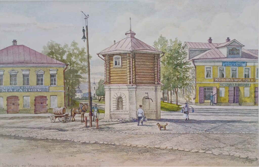 Л. В. Андреев. Акварель «Ильинская площадь». Июль