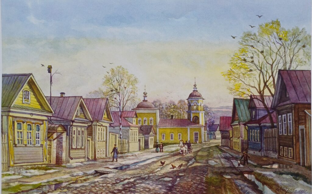 Л. В. Андреев. Акварель «Климентовская улица». Февраль