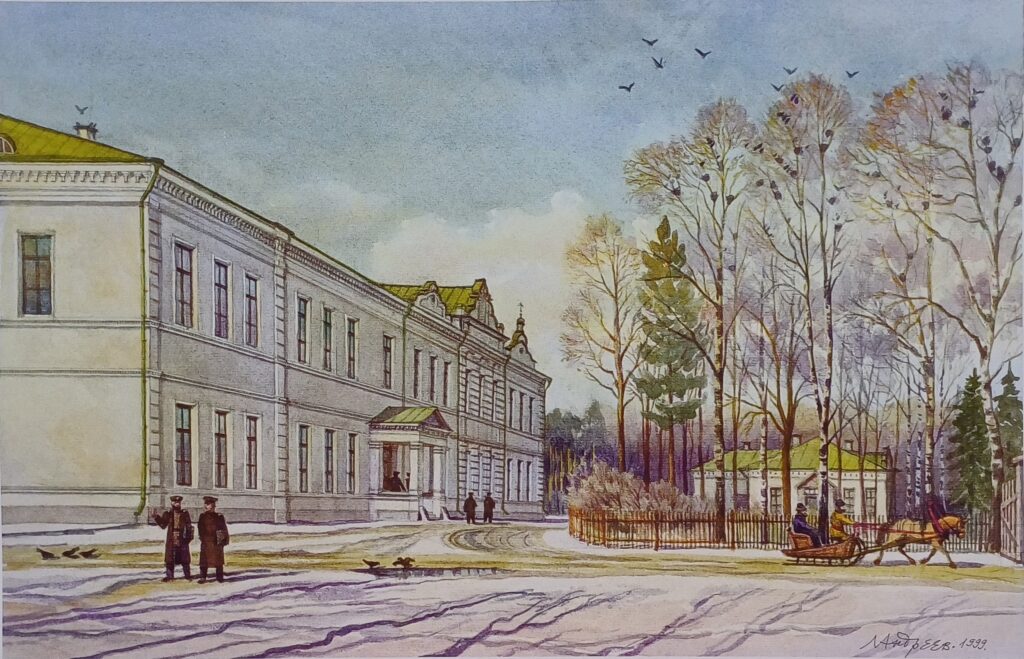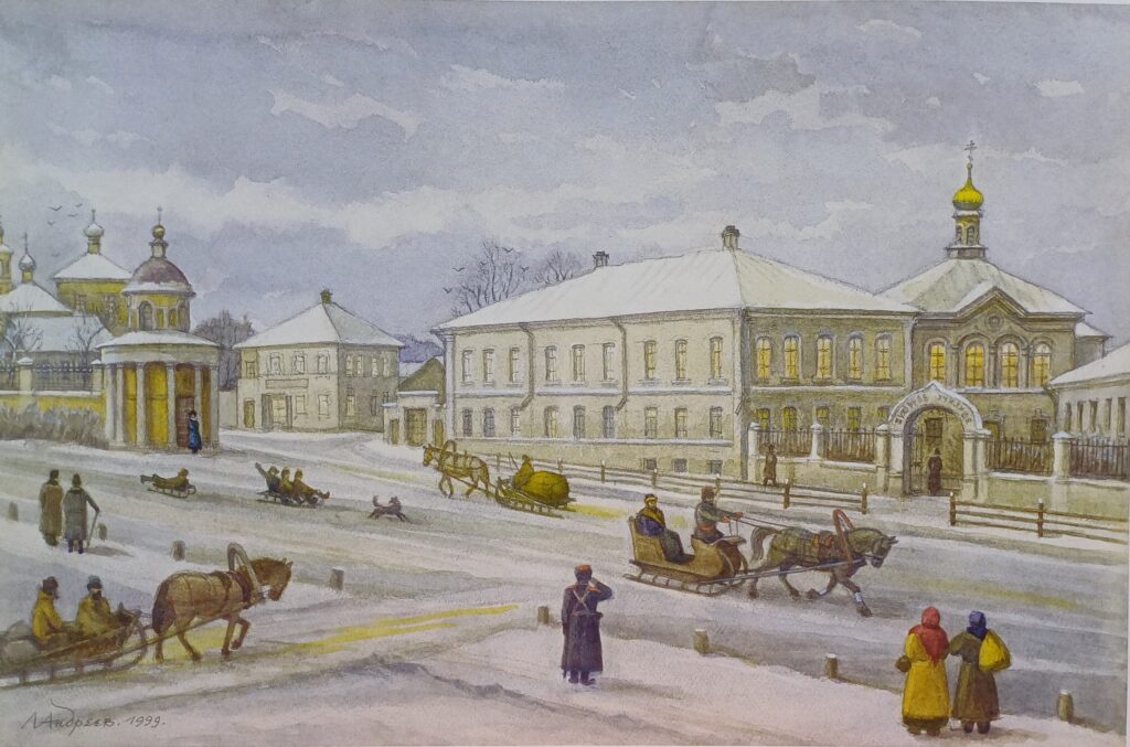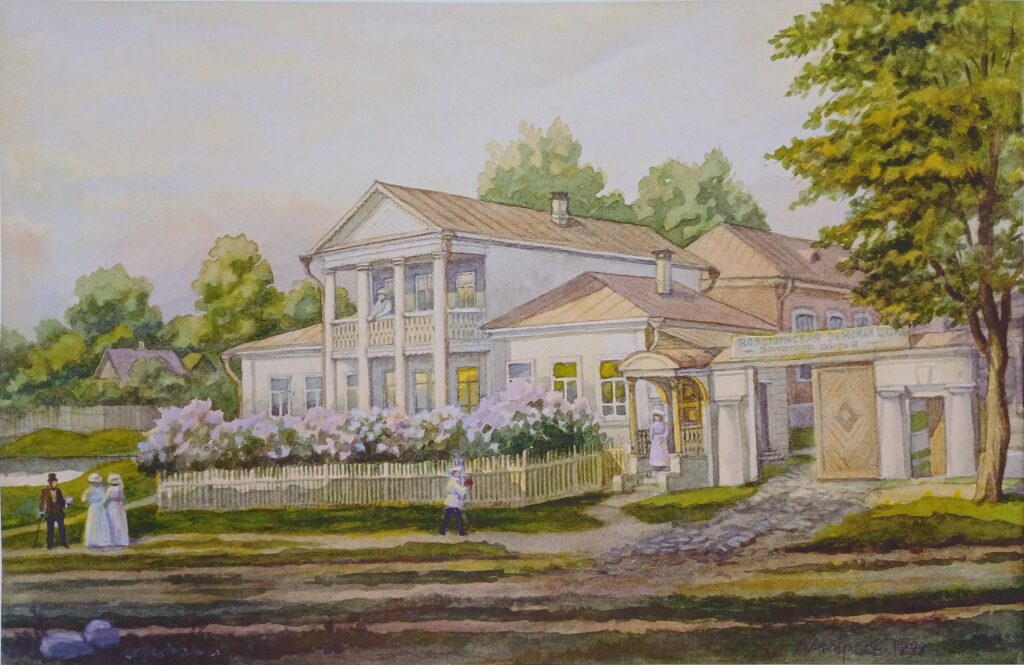 Л. В. Андреев. Акварель «Учительская семинария в Торжке». Март